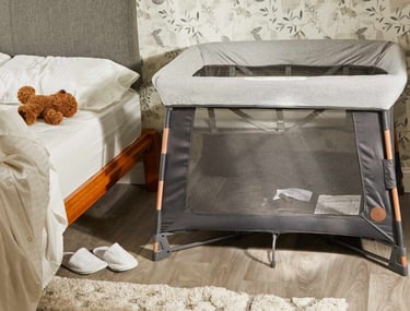 Having a consistent place for sleep has made a noticeable difference for us when traveling. A lightweight, easy-to-set-up travel crib helps create a familiar boundary and routine, whether we’re staying with family or in a hotel. I prioritize options that are simple to use and don’t require complicated assembly after a long travel day.